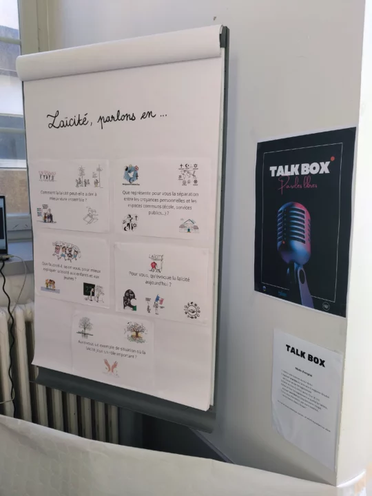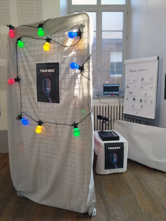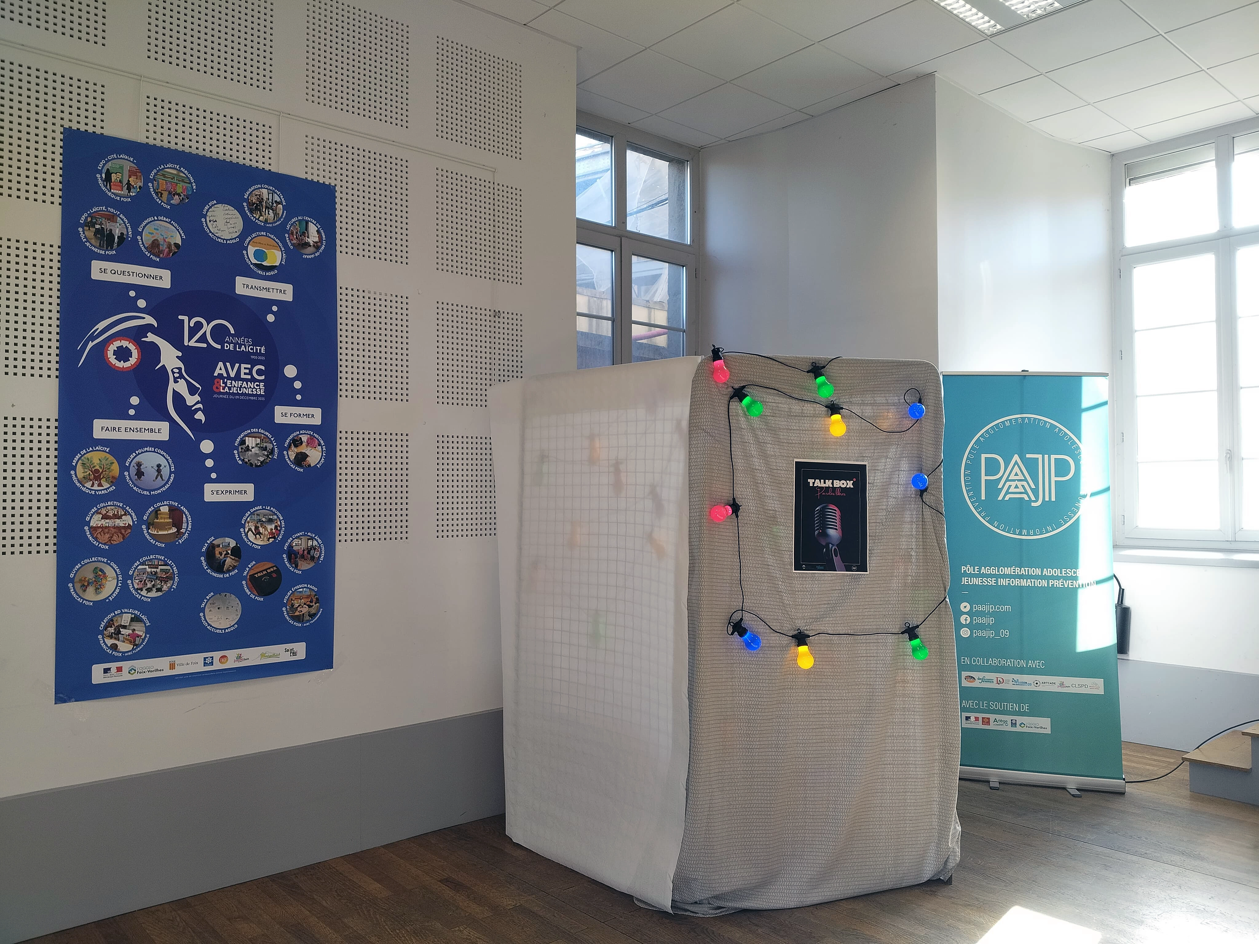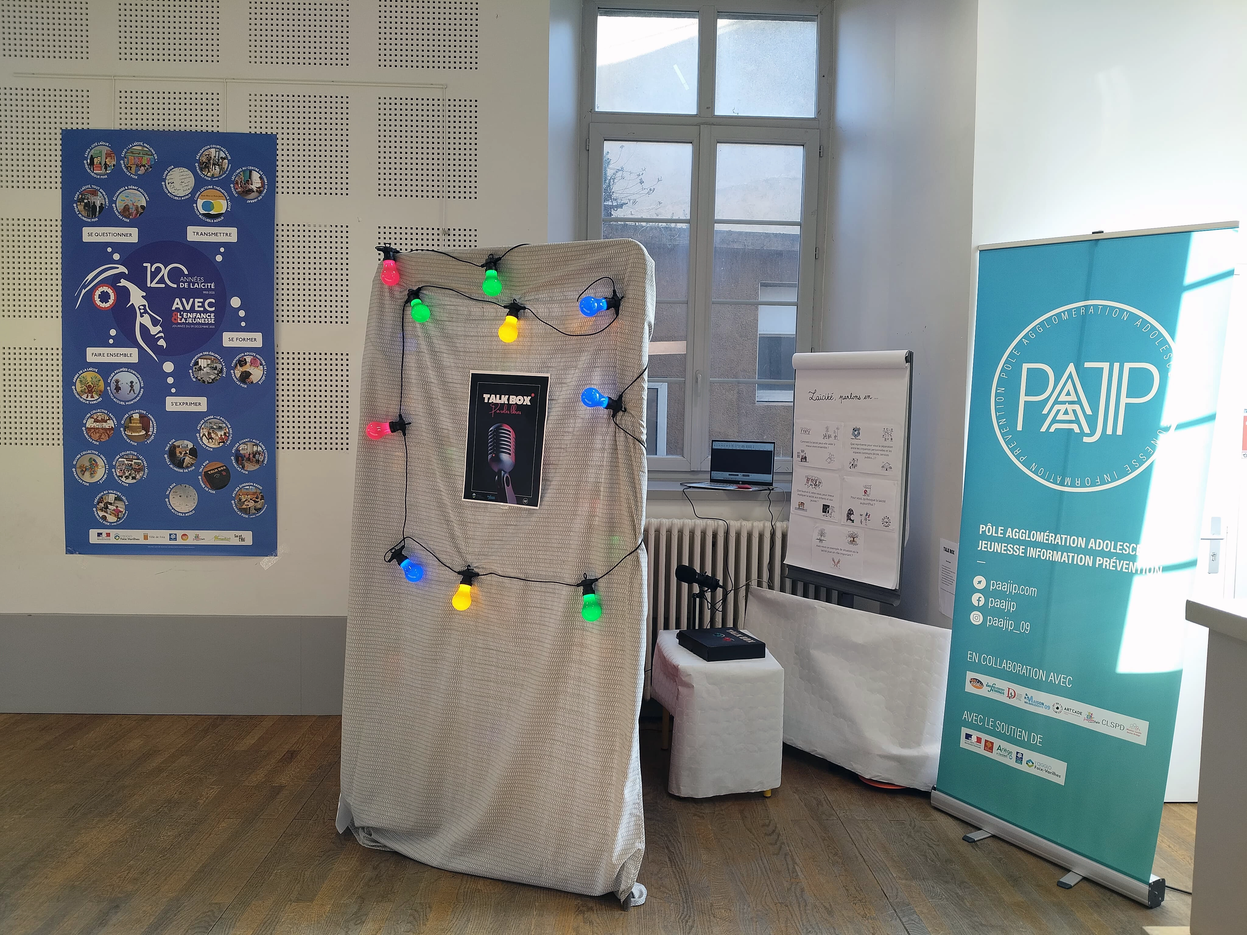 Dans ce même esprit, la Talk Box du PAAJIP a été installée dans plusieurs lieux de l’agglomération : au PAAJIP, à la ludothèque et à la crèche de Ferrières, puis à la mairie de Foix le 9 décembre. À l’intérieur de ce confessionnal sonore, micro ouvert et anonymat garanti, tout le monde a pu s’exprimer librement autour de questions liées à la laïcité. Un espace sans jugement, pour mettre des mots sur ses idées, ses doutes ou ses ressentis.