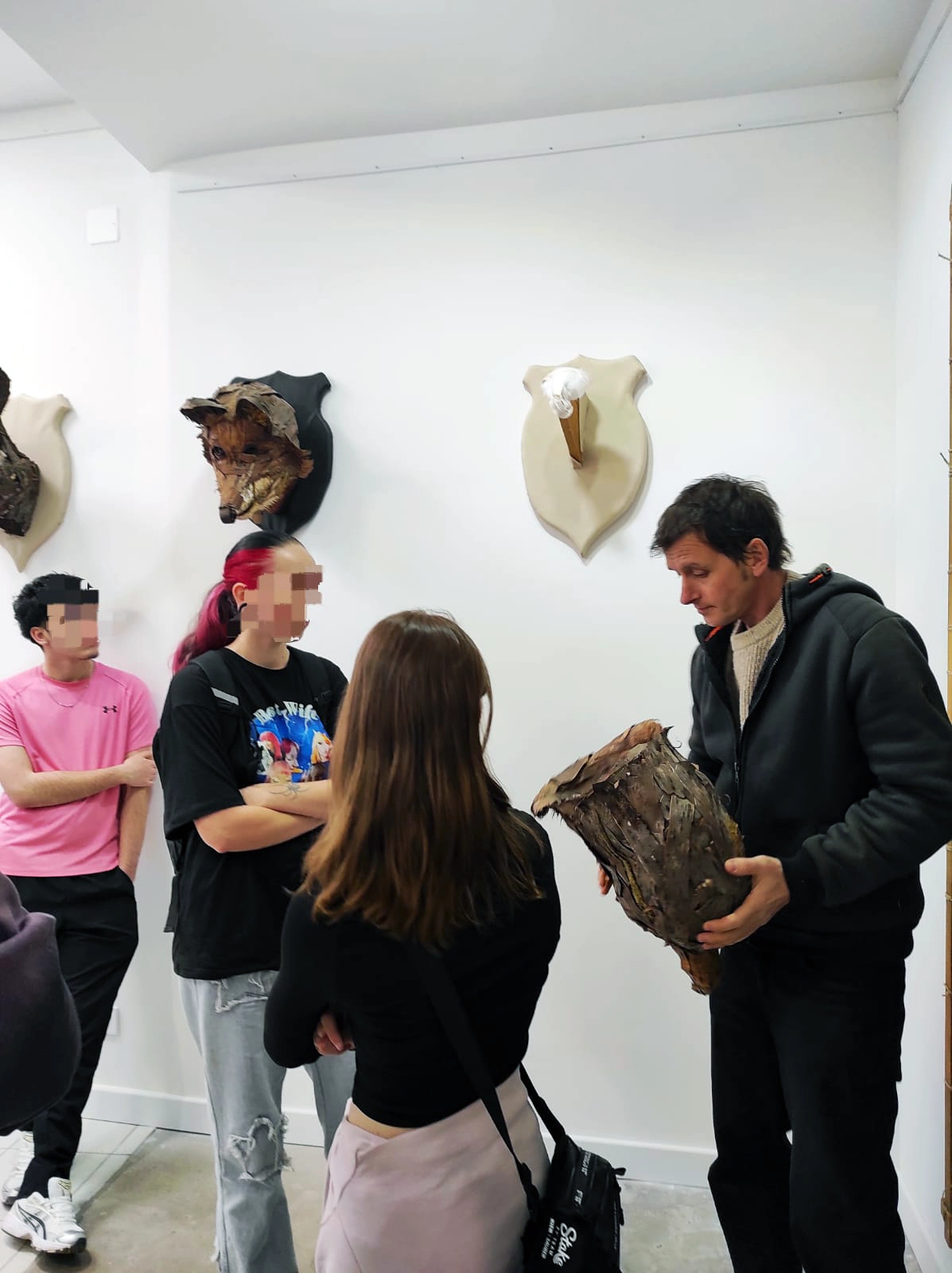 Lors de la visite, les participants ont eu l’occasion d’échanger directement avec David Lachavanne, présent sur l’exposition à la Biz’Art’Rit. Les discussions ont porté sur son parcours, ses inspirations, les techniques qu’il utilise ainsi que le choix des matériaux dans ses créations. Un moment riche qui a permis aux jeunes de poser leurs questions et de mieux comprendre le travail artistique.