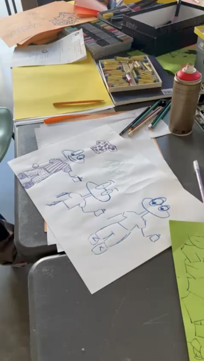 La séance s’est poursuivie par une mise en commun des propositions, permettant d’assembler les différentes idées et de commencer à construire la composition finale. Le groupe a aussi réfléchi au lieu où le graff sera posé.