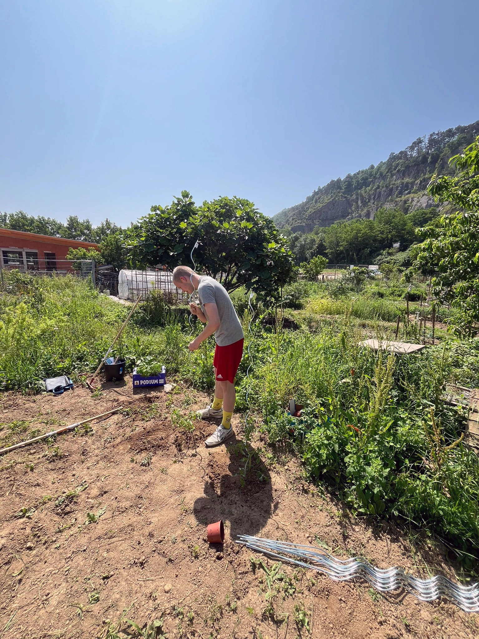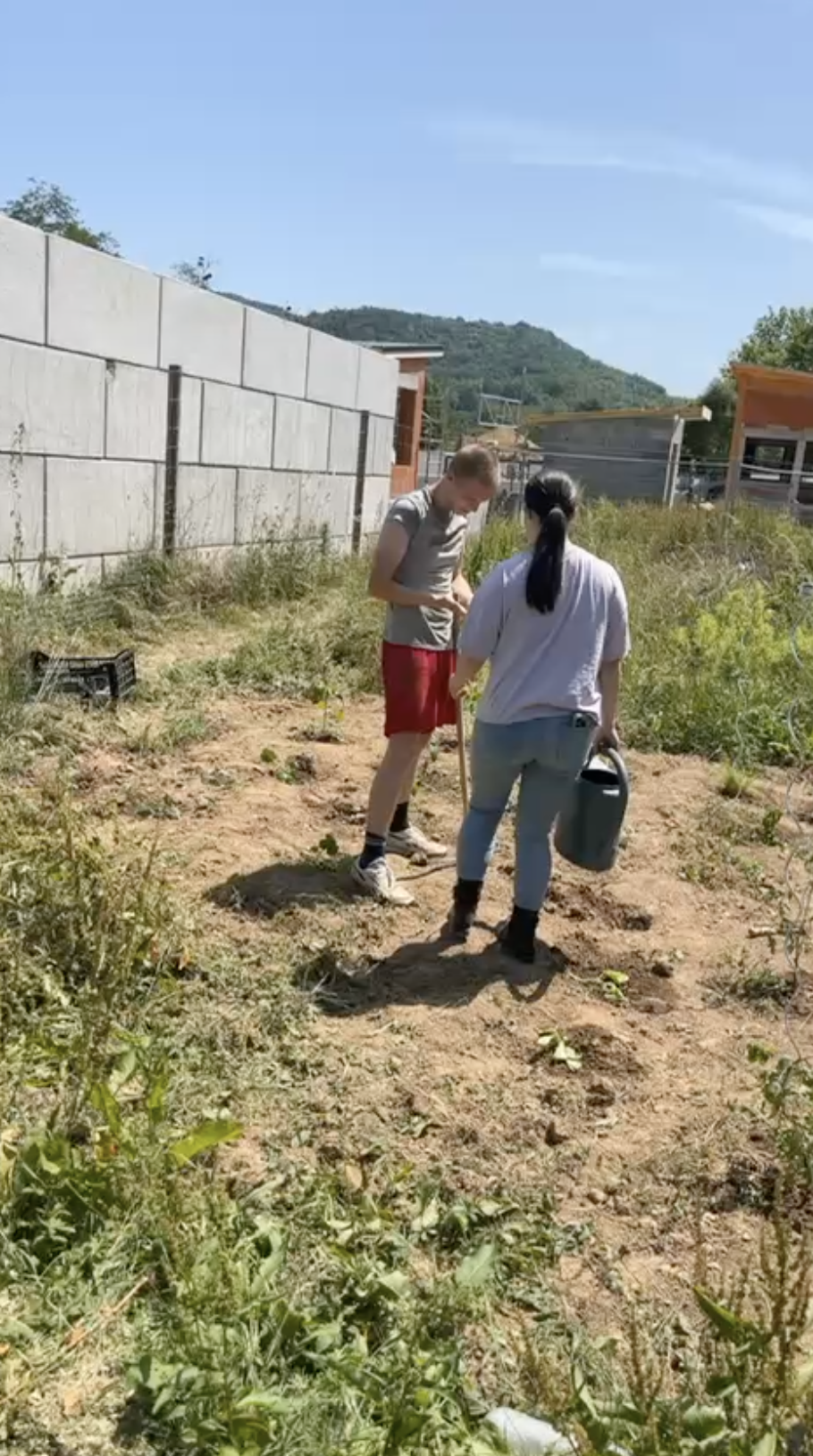 Sous une chaleur écrasante mais dans une ambiance toujours motivée et joyeuse, les jeunes et les stagiaires s’activent tout l’été : plantations, arrosage et entretien des premières pousses déjà en place. Petit à petit, le jardin prend vie et offre déjà un aperçu prometteur des futures récoltes.