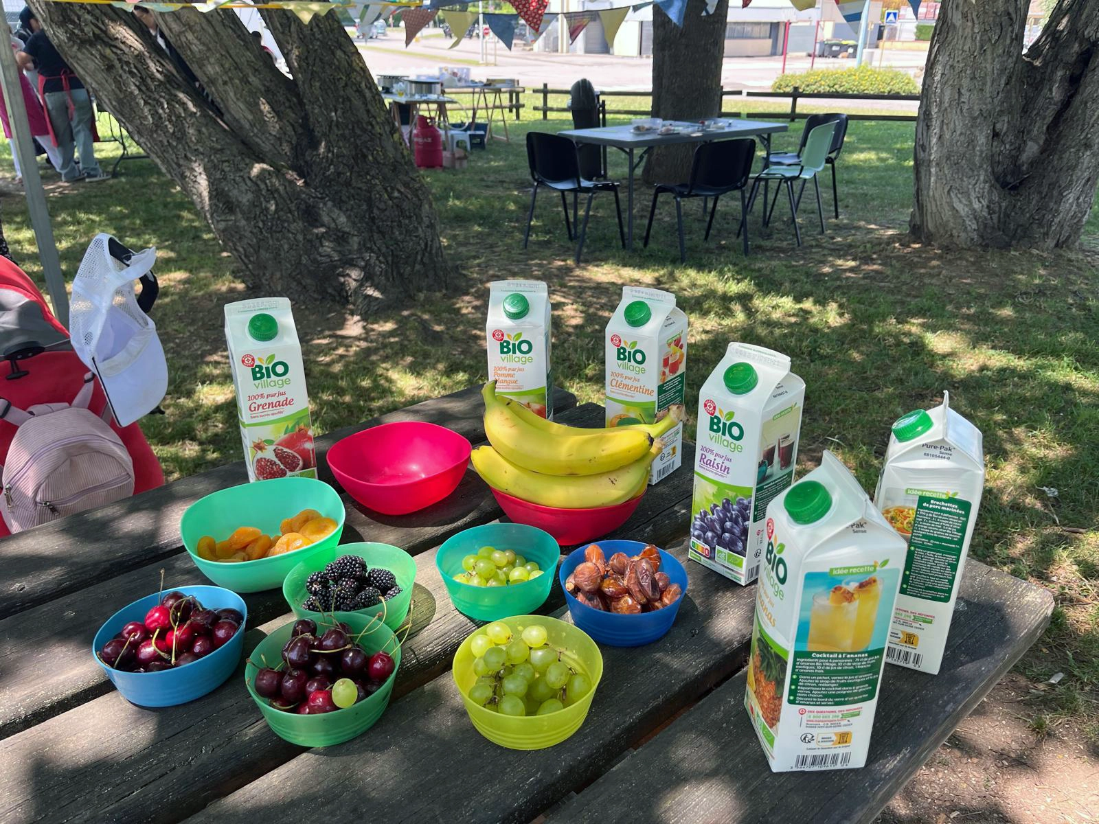 Après tous ces échanges et activités, tout le monde s’est réuni autour d’un goûter partagé, composé de fruits frais, fruits secs et jus de fruits. Une belle façon de terminer cette année dans la détente et la bonne humeur !