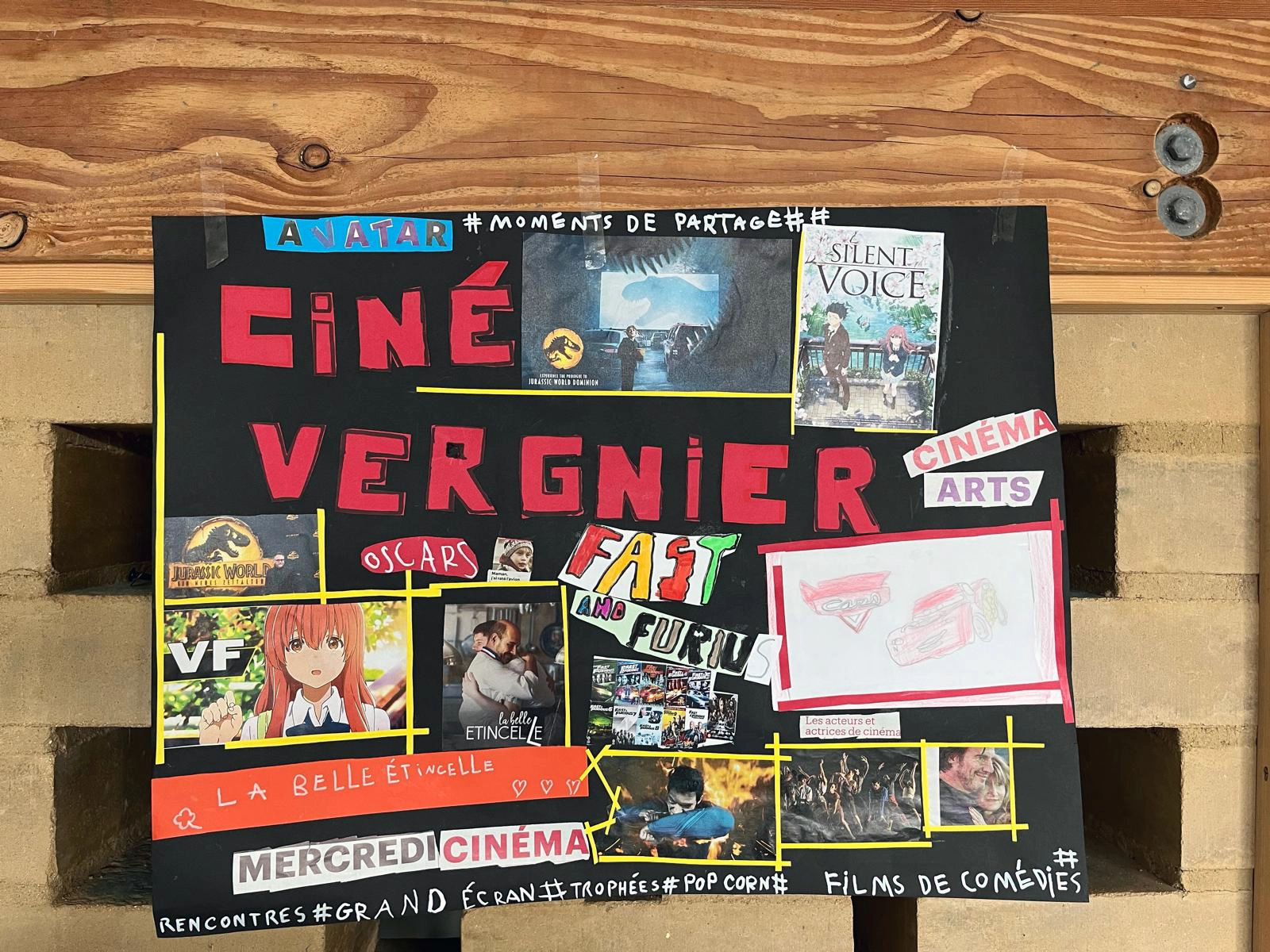 Le 27 mars, 6 jeunes de l’IME de la Vergnière, accompagnés de leur enseignante et éducatrice, sont venus assister à une projection. À l’issue de la séance, ils ont réalisé une affiche autour du thème « C’est quoi le cinéma pour toi », prolongeant la réflexion autour de l’image et de leur ressenti.