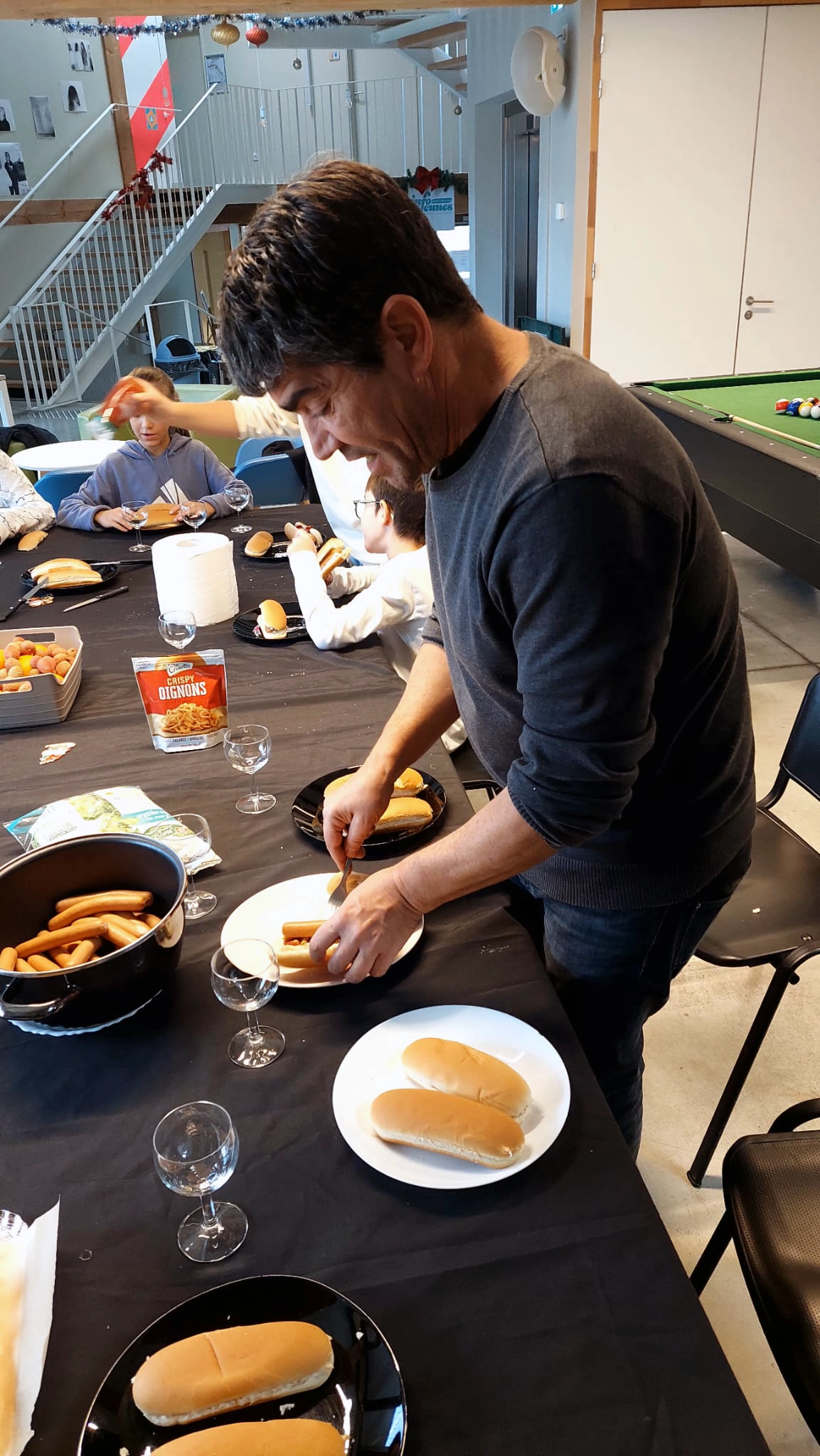 Le 24 décembre, place à une journée plus calme mais tout aussi animée au Pôle jeunesse de Foix. Une vingtaine de jeunes ont profité d’un temps “chill” autour d’activités variées : ping-pong, billard, jeux vidéo, ateliers créatifs… Le tout ponctué par un repas convivial le midi, avec des hot-dogs partagés autour de la table.